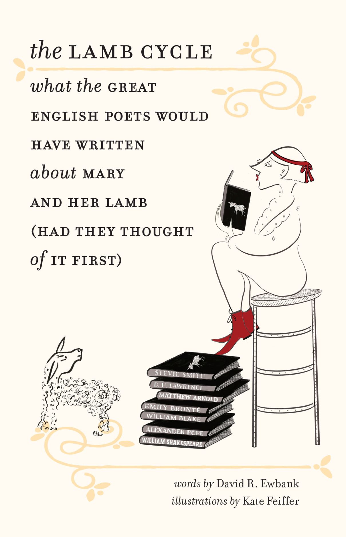 In The Lamb Cycle, David R. Ewbank achieves the unthinkable—he writes so convincingly in the style of the great English poets that one could be lulled into thinking that Shakespeare himself was inspired to muse upon the subject of “Mary Had a Little Lamb.” Ewbank captures not only the style of each of the poets he chooses, but also their preoccupations and subject matter. So D.H. Lawrence’s Mary longs for her lamb as any woman longing for her lover, whilst T.S. Eliot’s Mary is recollected by an old man looking back on his life. Alexander Pope writes an “An Essay on Lambs,” and Tennyson’s lotus eaters become “The Clover Eater.” Brilliantly written, sophisticated, and laugh-out-loud funny, these poems, enhanced by Kate Feiffer’s charming illustrations, will enchant anyone who has ever read an English poem.