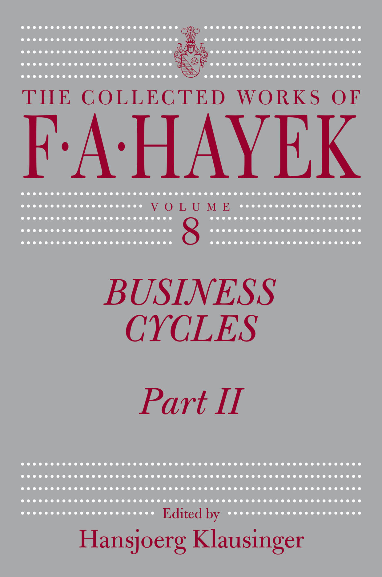 In addition to bringing together Hayek’s work on the evolution of business cycles, the two volumes of Business Cycles also include extensive introductions by Hansjoerg Klausinger, placing the writings in intellectual context—including their reception and the theoretical debates to which they contributed—and providing background on the evolution of Hayek’s thought.