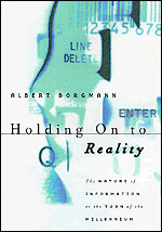 "[Borgmann] has offered a stunningly clear definition of information in Holding On to Reality. . . . He leaves room for little argument, unless one wants to pose the now vogue objection: I guess it depends on what you mean by nothing."—Paul Bennett, Wired