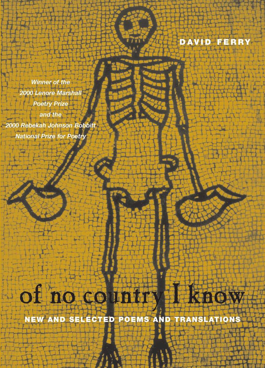 "Though Ferry is perhaps best known for his eloquent translations of Horace and Virgil, "Of No Country I Know" demonstrates that he deserves acclaim for his own poetry as well."—Carmela Ciuraru, New York Times Book Review