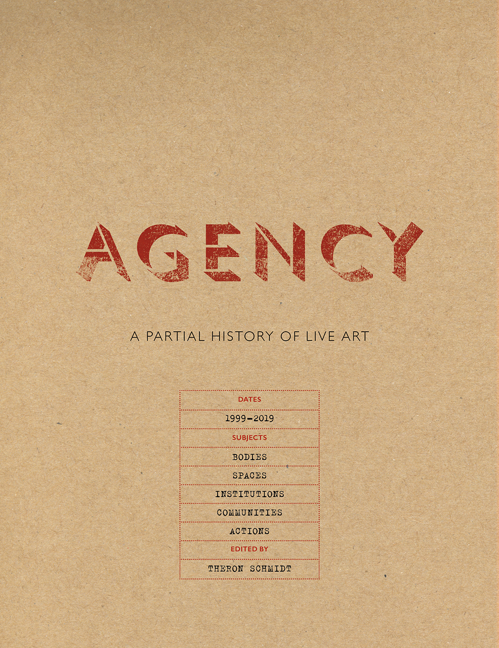 "Agency offers one of the clearest explanations in plain English of exactly what constitutes Live Art, what sets it apart from theatre or other practices in the creative industries and why that matters. As a reference book it offers an intelligent and rigorous interrogation of Live Art its guts and gore, its shock tactics and disruptions, its raw energy, risk taking and ingenuity."