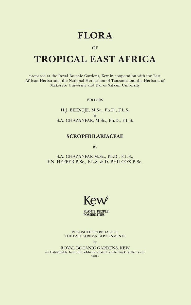 Prepared at the Royal Botanic Gardens, Kew in co-operation with the East African Herbarium, the National Herbarium of Tanzania, and the Herbaria of Makerere University and Dar es Salaam University.